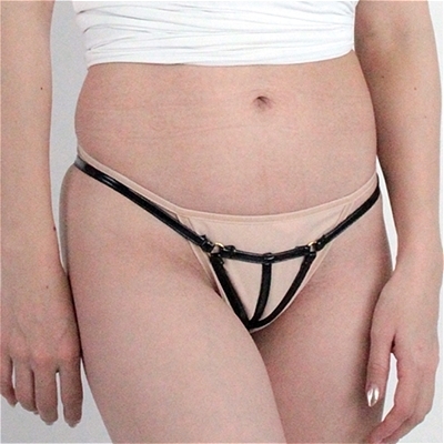 光沢フロントワンタッチバックル付きTバック ホワイト ホワイト