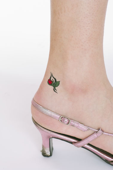 お洒落のワンポイントになるファッションアイテム!ミニサイズの刺青シール「薔薇トライバル3」。