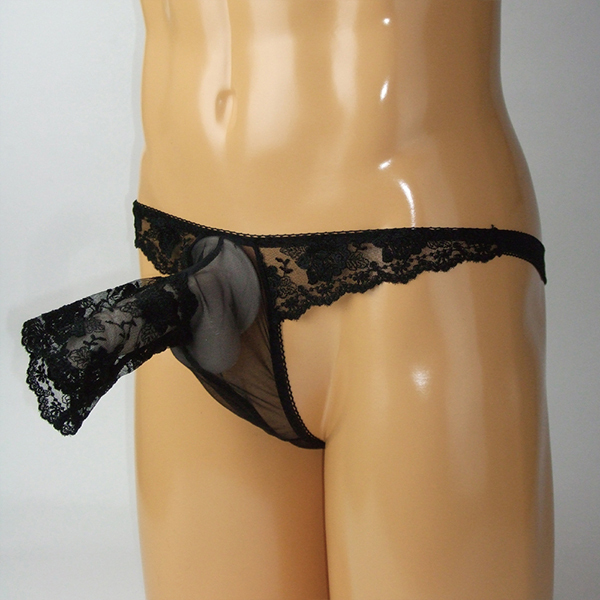 > メンズ スケスケシースルー素材のセクシーな生地にレース付きぞうさん貫通型TB ブラック