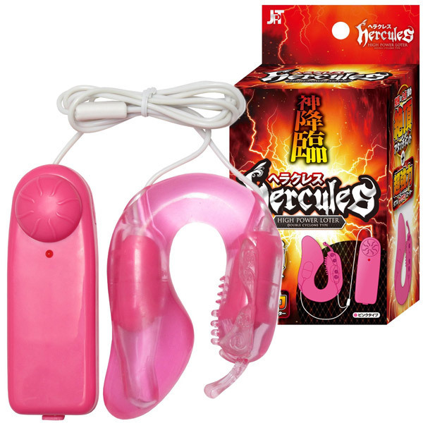 Gスポット&クリトリスを同時責め!究極刺激の二股アタッチメント付きダブルローター「ヘラクレス」ピンク。