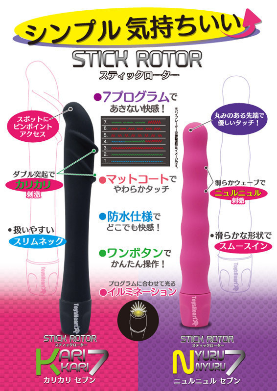 トイズハート社から、スリムな見た目でも高刺激を味わえるスティック型ローター「ニュルニュルセブン」が発売されました!スベスベのフォルムでスムーズな挿入が可能な15cmの長さと23mmの最大径で、波打つうねり形状が快感を演出します。